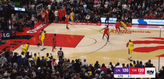 最后3秒,湖人120-120猛龍,全場(chǎng)僅8分的詹姆斯接到了全場(chǎng)狂砍44分的里皇的傳球,詹姆斯手握最后一攻。